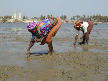 Femmes ramassant des coquillages Dionewar Siné Saloum (Sénégal)